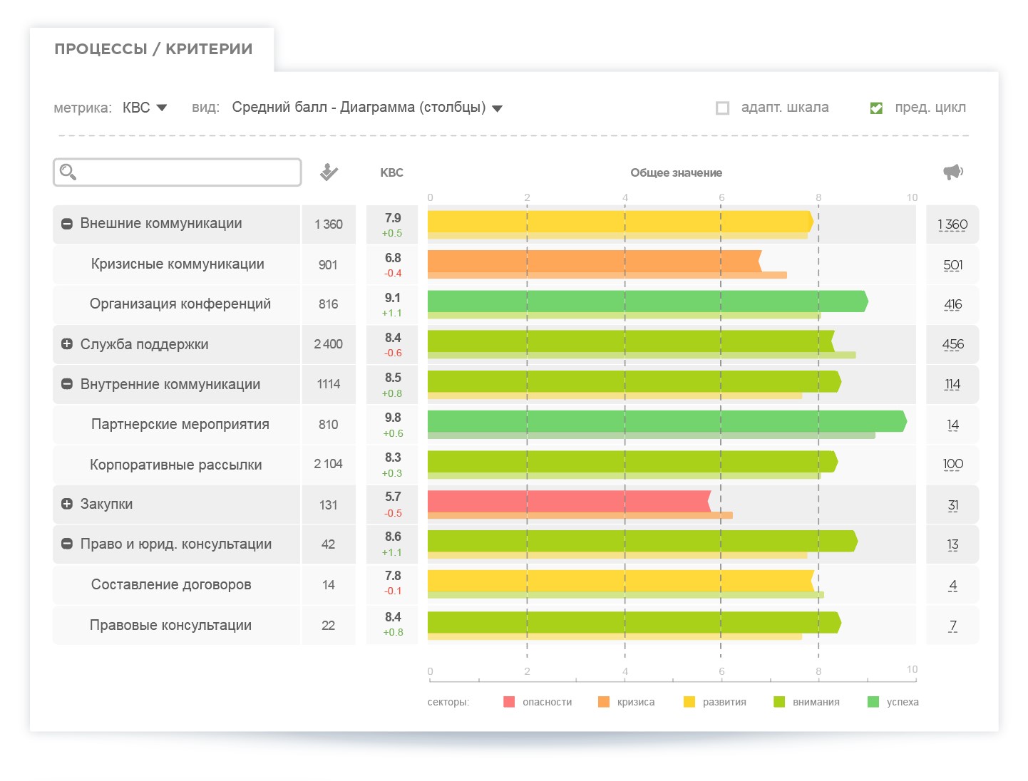 - Благодаря полученным данным руководители смогут лучше понять сильные и слабые стороны своего процесса. (При этом оценка клиентов позволит посмотреть на работу подразделения «другими глазами».)
