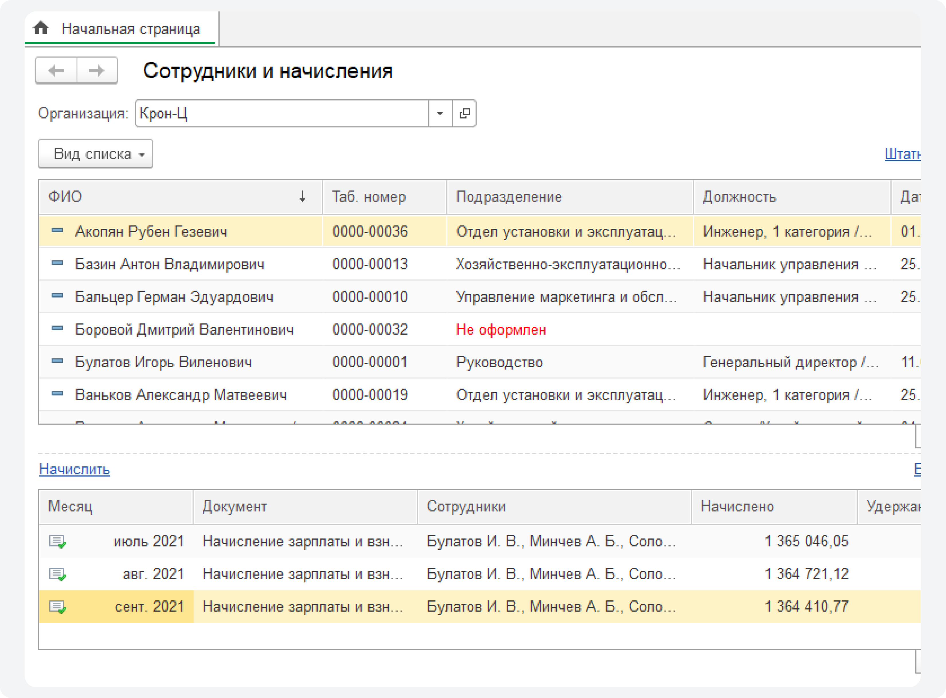 Самый популярный пример программы кадрового учета — «1С:Зарплата и управление персоналом 8 КОРП»