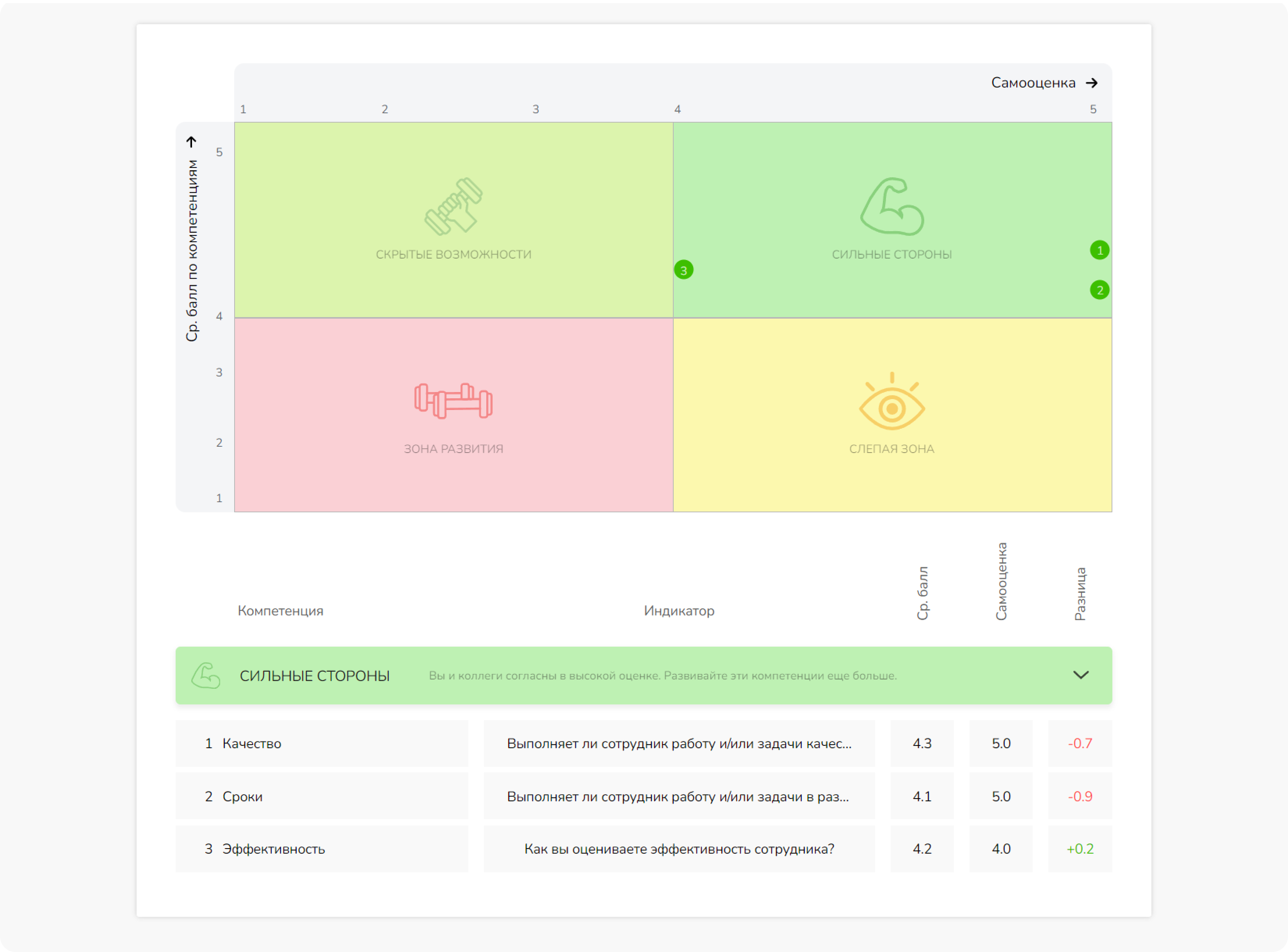 Сильные стороны и зоны роста сотрудника FeedbackX